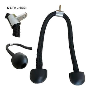 Puxador tríceps corda Ideal para Prática de Exercicios em academia Tamanho perfeito para puxada tríceps Produto Reforçado e de qualidade garantida, suporta ate 150 kg Confeccionado com corda trançada de polipropileno , presilha de aço cromado e ponteiras de PVC injetado. Tamanho total do puxador 80 cm Peso: aprox. 1 kg Cor : Preto Conteúdo: 01 Puxador Corda do vendedor: 30 dias Marca: Não Informado Ean: 79009380741374