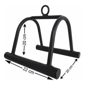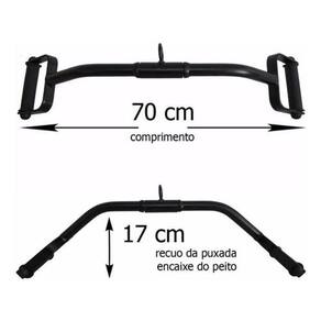 puxador feito em aço com pega em pvc e giro central. Puxador triangulo e v em aço, todos com soldas reforçadas e ótimo acabamento , vai tornar seu treino mais completo, produto de , nacional e com garantia. Especificações técnicas puxador d curvo - material: tubo oco de aço 1020 - parede do aço: 2 mm - material argola: aço trefilado 1020 com 6,5 mm de espessura - material da pega: aço maciço de 1 x 1/4 de espessura e manopla com giro total em pvc com pega de 1 1/4 32mm - todo soldado em mig soldas reforçadas - pintura eletrostática texturizada e anti-ferrugem - comprimento total do puxador: 70 cm - peso do produto unidade : 2 kg - cor: preto