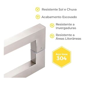 Puxador é um acessório indispensável para facilitar a abertura da porta, alem de dar um toque especial na decoração com um visual moderno. Super resistente podendo ser utilizado em regiões litorâneas, ficar exposto a sol e chuva que não haverá problemas de manchar ou enferrujar, devido ao seu material de aço inox com um lindo acabamento escovado. Pode ser em Portas Pivotantes de Madeira, Portas Comuns de Madeira, Portas de Vidro Temperado, Esquadrias de Alumínio, Esquadrias de Aço e Portões em Aço e Alumínio. Descrição do produto: Item: Puxador de Portas 2 peças, Dentro e Fora . Material: Aço Inox 304 Cor: Prata Acabamento: Escovado Formato: Retangular Comprimento: 100cm Espessura: 2cm Demais medidas, conferir última imagem da sessão de fotos. Marca: Não Informado