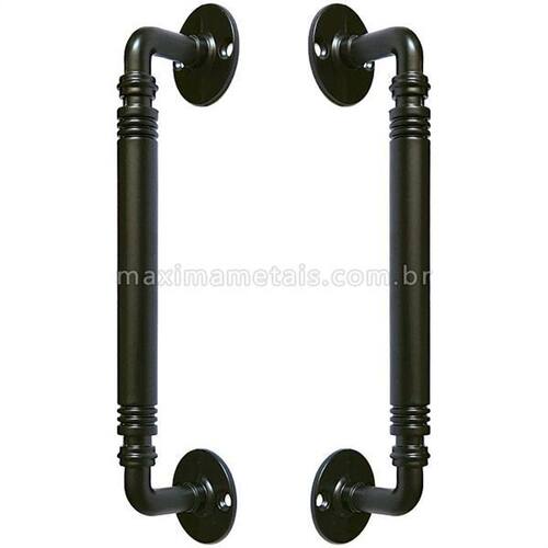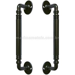 Puxador duplo germany preto fosco 195mm porta pivotante correr madeira vidro colonial clássico rústico Puxador duplo para portas rústico colonial germany preto fosco