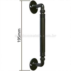 Comprimento: 195 mm Diâmetro da base: 32 mm Profundidade: 38 mm Largura : 34mm Diâmetro : 14mm Distância entre furos: 158 mm Peso: 0,192 kg Material: zinco Cor : preto fosco Acompanha: parafusos para instalação Quantidade: kit com o par de puxadores para os 2 lados da porta puxador duplo