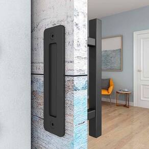 Peso total: 0,70 kg Material: zinco Cor: preto fosco Acompanha: peças para instalação Quantidade: par de puxadores para os 2 lados da porta sendo um de embutir