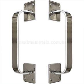 Características: Comprimento: 140mm Largura alça: 14mm Largura base: 30mm Profundidade: 35 mm Peso par : 0,86 Material: aço Cor: cromado Nao companha parafusos para instalação Quantidade: par de puxadores para os 2 lados da porta puxador duplo Código: m411-cro