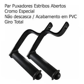Puxador Estribo Aberto Giratório Crossover Maciço - Par 02 unidades (01 par) Puxadores feitos em aço maciço com pega em pvc giratória, soldas reforçadas e ótimo acabamento, vai tornar seu treino mais completo, produto de primeira linha, nacional e com garantia. Especificações técnicas - material: aço maciço de 1 x 1/4 espessura - furo: 11 mm - material da pega: manopla com giro total em pvc com pega de 1 1/4 (32 mm) - todo soldado em mig soldas reforçadas - pintura eletrostática texturizada e anti-ferrugem - comprimento total do puxador: 20 x 16 cm (altura x largura) - peso do produto (unidade): 500 gramas - cor: preto Conteúdo: 02 puxadores estribo aberto