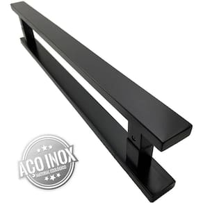ESPECIFICAÇÕES TÉCNICASÁrea de aplicação: Portas Pivotantes de Madeira, Portas de Madeira, Portas de Vidro, Esquadrias de Alumínio, Esquadrias de Aço e Portões em Aço e AlumínioMaterial: Aço InoxInstalação em área externa: SimAcabamento: Pintura Eletrostática EpóxiCor: Preto FoscoConteúdo da embalagem: 1 Par de puxador + chave hexagonal para instalação do puxadorTamanho do puxador: 60cmDistância entre furos: 40cmMedida da Largura da barra: 4cmMedida da Espessura da barra: 1cmMedida Profundidade Pé do Puxador; distância entre face interna do puxador até a porta : 4cm Ean: 1000000171853