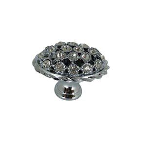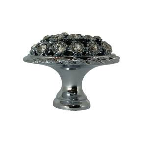 Puxador para móveis pontual (fixado com um parafuso somente), confeccionado em zamac (liga metálica composta por zinco (Zn), juntamente com Alumínio (Al), Magnésio (Mg) e Cobre (Cu), predominantemente utilizada no ramo moveleiro). Possui cristais de vidro em sua face superior, criando um lindo efeito estético.
