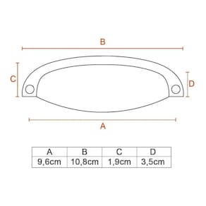 Puxador Concha RetrôEstilo e elegância é o que seus móveis precisam! Peças únicas com acabamento requintado! Ideal para gavetas, portas, móveis de luxo, armário de canto, racks, cômodas, guarda-roupas, cristaleiras e qualquer outro lugar que desejar!Características:• Modelo: concha• Comprimento: 107,4 mm• Profundidade: 18 mm• Altura: 33 mm• 02 Furos• Distância entre furos: 96 mm• Produzido em liga metálica Zamac (composta por Zinco, Alumínio, Magnésio e Cobre)• Instalação: SobrepostaConteúdo da Embalagem:• 01 Puxador• Acompanha ParafusosCORES DISPONÍVEIS EM OUTROS ANÚNCIOS: ANTIQUE, COBRE ESCOVADO, CROMADO, PRETO MATTE, ROSE BRILHANTE, DOURADO E AÇO ESCOVADO FOSCO