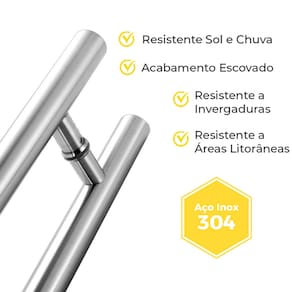 Resistente, pode ser utilizado em regiões litorâneas e exposto a sol e chuva sem riscos de manchas ou ferrugem, graças ao seu material de aço inoxidavel 304, adequado para diversos modelos de portas, como pivotante, de madeira, de vidro, de alumínio, de aço, de correr e portões.