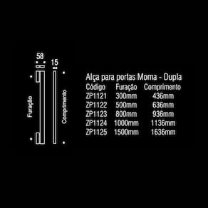 Alça para Porta Moma Duplo 1000mm Inox Polido