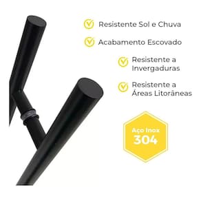 Puxador porta pivotante h 40cm aço inox 304 preto escovado
