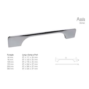Material:zamac Acabamento:cromado Comprimento:138mm Largura:14mm Comprimento entre furos: 128mm Ean: 7891249011093