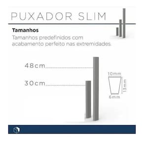 Puxador slim rometal adesivo 300mmAnuncio de ramificação, se atente na cor que deseja- ideal para aplicações em portas de correr- fixação adesiva em qualquer superfície lisa mdf, mdp, metal, vidro e etc - disponível nas cores: preto, cromado e acetinado- comprimento total: 300mm- largura total: 10mm- altura total: 13mm