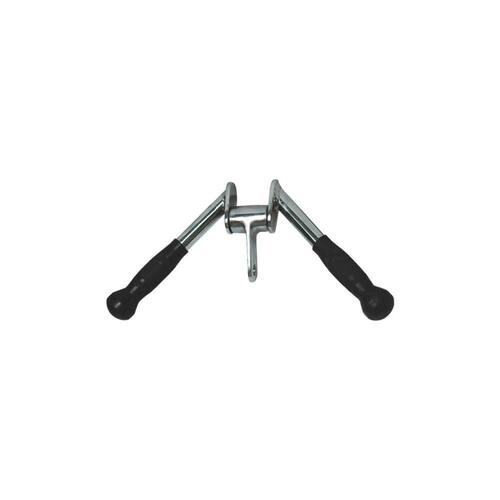 Puxador V Maciço Alça de Borracha. Produzido em aço maciço, é resistente e tem o mais alto padrão de fabricação. Em formato V e com roldana, tem pegada revestida em borracha nas extremidades para garantir conforto e aderência. O ilhó do cabo é grande o bastante para carabiners robustos. O puxador V é utilizado em máquinas a cabo que possuem pilhas de pesos e permitem ao usuário usar uma variedade de alças, assim, tonificando diferentes músculos. Especificações Técnicas Cor: Prata Tamanho: 60cm - comprimento Composição : Aço e borracha Peso: 3kg : 03 meses Conteúdo da Embalagem: 1 puxador Imagens meramente ilustrativas