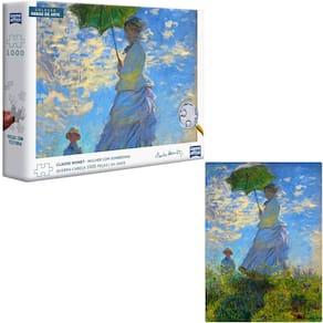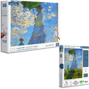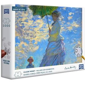 Descrição do produto : " Admire o charme e a leveza das pinceladas de Monet com este quebra-cabeça de 1000 peças inspirado na obra ""Mulher com Sombrinha"". Este quebra-cabeça vem com padrão internacional de qualidade e encaixe suave que pode ser sentido em cada peça! Imagem montada (aproximadamente) 62,3 x 44,9 cm : "