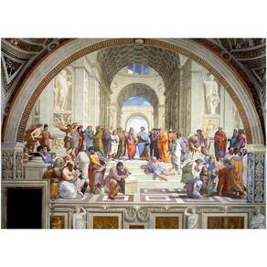 A obra A Escola de Atenas é uma famosa pintura criada por Rafael, no início do século XVI.A cena retratada mostra uma sala de aula com vários filósofos discutindo e debatendo. Entre eles, podemos ver Platão, Sócrates, Aristóteles e muitos outros.Rafael usou uma técnica de pintura conhecida como sfumato, que consiste em suavizar as bordas das figuras e criar uma sensação de profundidade na pintura.Além de sua beleza artística, a obra é um importante símbolo cultural e histórico, representando a busca do conhecimento e da verdade, temas fundamentais para a filosofia grega e para a Renascença.Dimensões aproximadas 70,4 x 97,8 cmContém 2000 peças Homologação Inmetro: CE-BRI/IQB 002276 54408/21-002 Marca: Não Informado