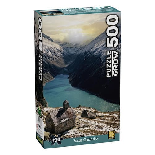 Poucos lugares no mundo têm a sorte de reunir numa mesma paisagem elementos simples e grandiosos que se completam perfeitamente.É isso que vemos na imagem que retrata este enorme vale nos Alpes, com uma construção ímpar, que se acomoda de forma plácida e isolada na magnitude das montanhas. A neve no topo parece aos poucos de deslocar para baixo, como se quisesse encontrar as águas que desfilam lentamente no centro de toda essa natureza.Sinta-se privilegiado e monte cada uma das 500 peças deste gélido local banhado de paz e belezaQuantidade de peças: 500Tamanho da imagem: 49,5 x 36,5 cm aproximadamenteHomologação Inmetro: CE-BRI/IQB 006352 52216/18-025