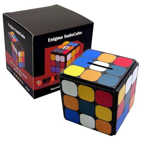 Esta é uma ótima caixa de quebra-cabeça, linda desenhada com cores Sudocube para usar, presente em dinheiro ou para guardar dinheiro e pequenas joias para guardar em segurança. Esta grande caixa de quebra-cabeça secreta é um presente muito popular que faz com que o destinatário desbloqueie a surpresa interior. Feito todo em madeira. Você pode resolver esse quebra-cabeça secreto? Sua missão, se você aceitar, é abrir a “Caixa Secreta de Quebra-Cabeças”. Você tem que decidir o que armazenar aqui, a decisão é sua. A caixa tem um compartimento de cofrinho para inserir/soltar moedas ou notas na caixa. O tamanho do compartimento interno é: 2,25 “L x 1,5" W x 1,75" H