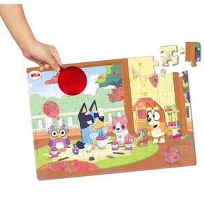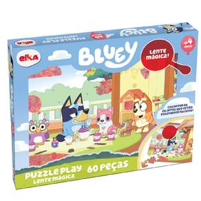 ***AVISO:ESTAMOS TRABALHANDO NORMALMENTE COM TODOS OS ITENS COM ENVIOS*** O Puzzle Play Lente Mágica- Bluey é diferente de tudo que você já viu! Bluey e Bingo esconderam alguns objetos na cena do puzzle e você deve encontrá-los A brincadeira começa montando o puzzle e depois de pronto, use a lente mágica para encontrar os objetos abaixo notas musicais martelo inflável varinha mágica carrinho xilofone colher estrela