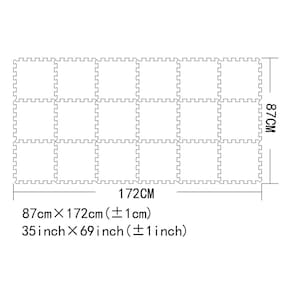 MQIAOHAM® 18 peças de tapetes de quebra-cabeça, tapete macio para bebês, azulejos de espuma interligados para crianças, tapetes infantis G301018-108 - ? Tamanho do tapete de jogo: o tamanho de uma peça: 30 x 30 x 1 cm (11,8 x 11,0 x 0,3 cm); 18 peças área de cobertura: 172 cm x 87 cm (± 1 cm) / 175.3 cm x 88.9 cm (± 1 polegada) - ? Material de espuma segura e não tóxica: livre de BPA, ftalatos e grafite. Atende aos padrões de segurança dos EUA e da Europa. - ? Grosso e macio: o tapete de brincar tem 1 cm de espessura, oferecendo forte flexibilidade e durabilidade. Perfeito para proteção do chão, exercícios, ioga e diversão. - ? Fácil de limpar e montar: a função de intertravamento facilita a montagem e o tapete pode ser facilmente limpo com um pano úmido e sabão neutro. - ? Nota de compatibilidade: embora este tapete possa ser combinado com outros tapetes de uma loja, não é compatível com tapetes de outras lojas. Observe as dimensões na imagem principal.