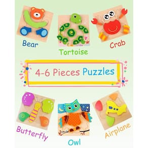 ? APRENDENDO BRINCANDO ? - Os quebra-cabeças de madeira contêm 6 pacotes de quebra-cabeças de animais: caranguejo, urso, boleta, coruja, tartaruga e avião. Os quebra-cabeças de madeira para crianças pequenas podem desenvolver a paciência, a imaginação, a concentração, o reconhecimento de cores e formas e a coordenação olho-mão da criança.