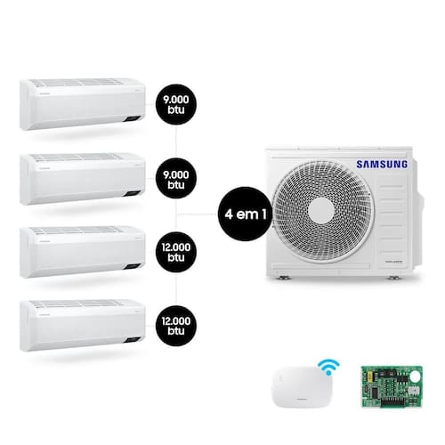 Menor consumo de energia O Multi Split Samsung consegue climatizar ambientes com menos condensadoras, reduzindo a necessidades de muitas maquinas trabalharem de forma independente e consumindo vários pontos de energia.