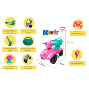 E é com muito orgulho que apresentamos uma novidade que traduz exatamente isso: o Quadriciclo Kendy. Pensado especialmente para crianças a partir de 12 meses, o quadriciclo é mais do que um brinquedo — é o primeiro “veículo” da infância, um companheiro de aventuras que estimula a coordenação motora, o equilíbrio e a autoconfiança, tudo isso com muita segurança e estilo.