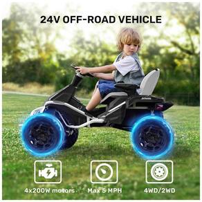 Este Buggy 24V 4WD é ideal para crianças grandes que amam aventuras. Com um espaçoso assento ajustável de 38 x 33 cm, capacidade de carga máxima de 58,96 quilos e faixa de velocidade de 5 km/h a 7,2 km/h, este carro é alimentado por uma bateria genuína de 24V e acionado por motores de acionamento 4x75w, gerando tensão estável e excelente potência. Com 2 marchas e opções 2WD e 4WD, este carro é perfeito para crianças de 3 a 8 anos que gostam de aventuras. O assento pode ser ajustado para frente e para trás em 3 posições diferentes, com faixa ajustável de 3,14 para acomodar a mudança de altura da criança e acompanhar o crescimento da criança. Além disso, o assento acolchoado e bastante espaço para as pernas permitem que o seu filho se sente confortavelmente e estique as pernas livremente.