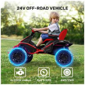 Quadriciclo Elétrico infantil 4x4 24V com Controle Remoto para Pais, até 7,2 km/h, ANPABO, Vermelho