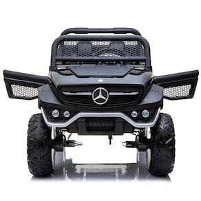 Modelado com base no Mercedes Benz Unimog, esta versão licenciada e realista de brinquedo infantil de 12 volts tem motores potentes, botão para dar partida, controle remoto, farol, buzina, Rádio FM, Bluetooth, Entrada Usb e MP3.
