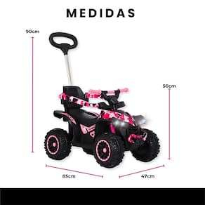 Especificações Técnicas: - Marca: Uni Toys - Modelo: Quadriciclo Meninas Poderosas - Código do Fabricante: 2656 - Faixa Etária Indicada: A partir de 12 meses - Capacidade Máxima: 30 kg - Acionamento: Faróis que acendem de verdade - Haste direcionável e removível - Aro de proteção removível - Material: Polipropileno