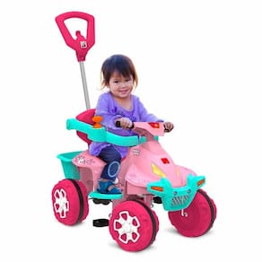 Quadriciclo Infantil - Passeio e Pedal - Smart Quad - Rosa - Bandeirante: O quadriciclo de passeio e pedal Smart Quad da Bandeirante é um produto com duas funções, prático e moderno para o adulto e divertido para as crianças! Smart Quad - 2 em 1 - Passeio e Pedal: • Função passeio: O adulto utiliza a haste (direcionável) para conduzir o Smart Quad. Basta colocar o cercado de proteção e o apoio dos pés • Função pedal: Permite à criança pedalar livremente como um carro a pedal. Basta remover a haste, o cercado de proteção e o apoio dos pés Detalhes: • Guidão Com lente e luz de LED • Suporte Para garrafa d'água, mamadeira ou squeeze (no cercado) • Apoio traseiro anatômico • Haste Direcionável e removível • Suporte para Bolsa/sacola • Cercado de proteção removível • Com prático sistema de abertura lateral • Baú sob o assento • Caçamba traseira • Apoio removível • Mantém os pés da criança apoiados confortavelmente • Novo sistema de tração • Cardan para maior conforto e agilidade ao pedalar • Rodas com anéis de proteção • Apoios removíveis para os pés Informações: • Produto: Carrinho Smart Quad 2 em 1 • Marca: Bandeirante Brinquedos • Coleção: Smart Quad • Tipo: Quadriciclo 2 em 1 - Passeio e Pedal • Categoria: Carrinho de Passeio e Pedal • Tamanho (C x A x L): 102.7 X 51.2 X 110.7 cm • Peso suportado: até 35 kg • Conteúdo: 01 Smart Quad • Idade recomendada: para crianças a partir de 12 meses de idade Especificações: • Referência: 1220 • Código de barras: 7899091412204 • Embalagem (C x A x L): 82.5 x 50 x 51.5 cm • Embalagem (Peso): 7.4 kg • Material Composição: Plástico • Registro: 003842/2021 OCP: 0061 • Certificado: Órgãos Autorizados - OCP´S (Organismos de Certificação de Produtos) Habilidades desenvolvidas: • Curiosidade e descoberta • Compreensão de causa e efeito • Coordenação entre olhos e pés • Coordenação motora fina - mãos e dedos • Coordenação motora grossa - braços e pernas Aviso: • As imagens são meramente ilustrativas • Os pesos, tamanhos e medidas são aproximados • As cores e estampas dos produtos podem ter variações • As informações são de responsabilidade do fabricante ou fornecedor Ean: 7899091412204