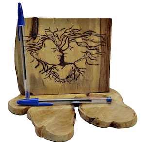 Detalhes do Produto: Material: Madeira de alta qualidade, fruto de poda ou queda natural, selecionada para garantir durabilidade e um acabamento rústico autêntico. Técnica: Pirografia artesanal. Cada detalhe é esculpido a mão.