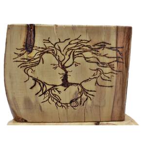 ---QUADRO FEITO Á MÃO COM BOLACHA RÚSTICA DE MADEIRA--- Tipo de madeira: Flamboyam Mirim- Tamanho Aproximado: ...Altura com a Base: 13cm ...Figura Casal àrvore: +-9 x 14cm As medidas podem variar alguns milímetros, para mais ou para menos. Peso:700gr Tipo de uso: Na Mesa.