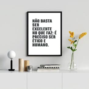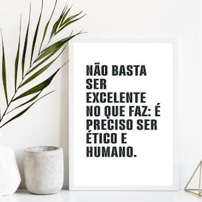 O Quadro É Preciso Ser Ético E Humano 24X18Cm é uma peça de decoração versátil, ideal para adornar diversos ambientes, como quartos, salas, cozinhas, escritórios, áreas gourmet e muito mais. Com medidas de 24x18cm A5 , cada peça possui uma moldura de madeira branca, proporcionando um visual elegante e moderno. Feito em papel fotográfico brilhante de altíssima resolução, o quadro possui uma película de acetato para proteger a imagem, garantindo maior durabilidade. Além disso, ele é embalado de forma segura com plástico bolha de camada dupla, de acordo com o tamanho do quadro. Com de 3 meses, o quadro já vem acompanhado de penduradores, facilitando sua fixação. Basta usar um martelo e um prego para pendurá-lo na parede. Caso prefira, é possível utilizar uma fita dupla face de alta qualidade para evitar que o quadro descole e caia. A limpeza do quadro é simples, podendo ser feita com um pano seco ou com um espanador, assim como qualquer outro móvel da sua casa. Essa praticidade permite que você mantenha seu quadro sempre em perfeito estado, sem grandes esforços. Especificações técnicas: - Título: Quadro É Preciso Ser Ético E Humano 24X18Cm - Material da moldura: Madeira branca - Material do papel: Papel fotográfico brilhante de altíssima resolução - Medidas: 24x18cm A5 - Acompanha película de acetato para proteção da imagem - Embalagem segura com plástico bolha de camada dupla - : 3 meses 1. Como fixar o quadro na parede? O quadro já vai acompanhado de penduradores, então basta usar um martelo e um prego para fixá-lo na parede. Essa é a forma mais indicada. Caso prefira, você pode utilizar uma fita dupla face de alta qualidade para evitar que o quadro descole e caia. 2. Como limpar o quadro? A limpeza do quadro é simples, podendo ser feita com um pano seco ou com um espanador, assim como qualquer outro móvel da sua casa. Evite o uso de produtos químicos agressivos, pois eles podem danificar a imagem. 3. Qual a do produto? 4. O quadro vem pronto para pendurar? Sim, o quadro já vai acompanhado de penduradores, facilitando sua fixação na parede. Transforme seus espaços com o Quadro É Preciso Ser Ético E Humano 24X18Cm. Garanta já o seu e dê um toque especial à sua decoração.