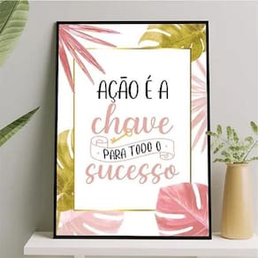Quadro a ação é a chave para o sucesso 45x34cm - com vidro Moldura: madeira preta Informações do produto tire todas as suas dúvidas no descritivo abaixo: decoração para quarto, sala, cozinha, escritório, área gourmet e muito mais. Chega de paredes vazias medidas - cada peça tem 45x34cm a3 . Material do papel - papel fotográfico brilhante de altíssima resolução acabamento - todos os quadros são acompanhados de vidro para proteção da imagem. - moldura em madeira maciça na cor preta e pendurador . - os quadros são embalados de forma segura com plástico bolha com camada dupla de acordo com o tamanho dos quadros. Garantia - garantia de 3 meses. Meu quadro chegou. Como posso fixá-lo Você precisa apenas de um martelo e um prego, pois os quadros já vão acompanhados de penduradores. Esta é a forma mais indicada. Como posso limpar meu quadro A limpeza é feita como um móvel comum da sua casa. Apenas um pano seco ou espanador são suficientes para tal