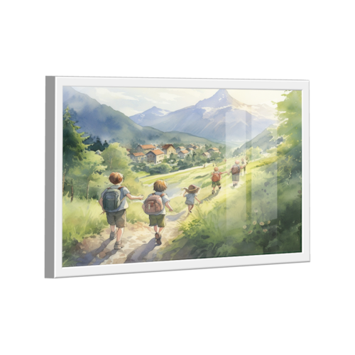 Quadro A Caminho Da Escola--BR ARTES Moldura Branca e Vidro - Gigante 180x105 -
