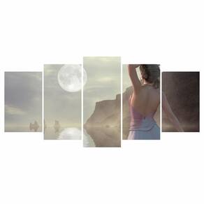 Quadro A Moça E A Lua Paisagem Decorativo Mosaico