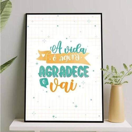 Quadro a vida é agora agradece e vai 24x18cm Moldura: madeira branca Informações do produto tire todas as suas dúvidas no descritivo abaixo: decoração para quarto, sala, cozinha, escritório, área gourmet e muito mais. Chega de paredes vazias medidas - cada peça tem 24x18cm a5 . Material do papel - papel fotográfico brilhante de altíssima resolução acabamento - todos os quadros são acompanhados de uma película de acetato para proteção da imagem. - os quadros são embalados de forma segura com plástico bolha com camada dupla de acordo com o tamanho dos quadros. Garantia - garantia de 3 meses. Meu quadro chegou. Como posso fixá-lo Você precisa apenas de um martelo e um prego, pois os quadros já vão acompanhados de penduradores. Esta é a forma mais indicada. Caso prefira, você pode utilizar uma fita dupla face neste caso, sugerimos de alta qualidade para evitar que descole e seu quadro caia . Como posso limpar meu quadro A limpeza é feita como um móvel comum da sua casa. Apenas um pano seco ou espanador são suficientes para tal Ean: 7894581900780