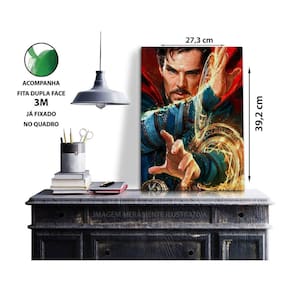 Com medidas de 27,3 cm x 39,2 cm aproximadamente, este quadro é ideal para ser usado como decoração em sua casa, escritório ou até mesmo como um presente para aquele amigo ou familiar que adora a cultura geek/nerd.