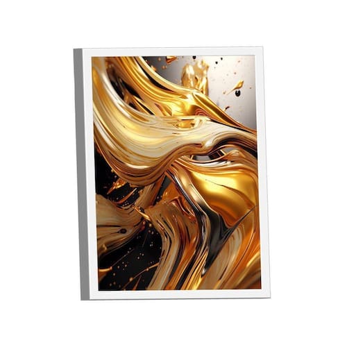Quadro Abstract Gold 3D -- BR ARTES Moldura Branca - Grande 118x78 -