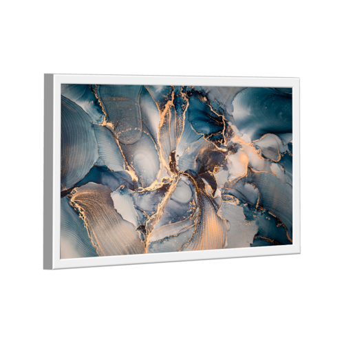 Quadro Abstrato Azul Gold -- BR ARTES Moldura Branca - Ultra Grande 150x100 -