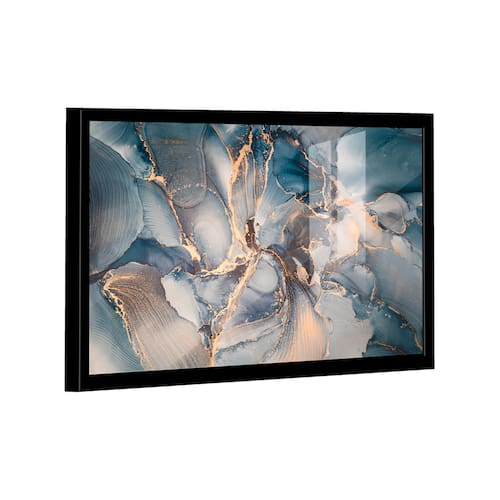 Quadro Abstrato Azul Gold -- BR ARTES Moldura Preta e Vidro - Grande 118x78 -