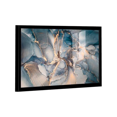 Quadro Abstrato Azul Gold -- BR ARTES Moldura Preta e Vidro - Gigante 180x105 -