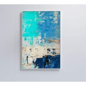 Quadro Abstrato Pintura Em Tela Azul Medidas 80x120 Cm Impressão Vidro Acrílico