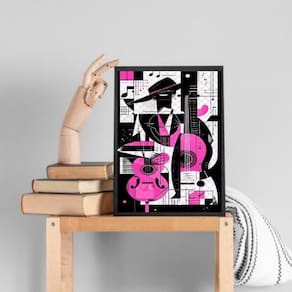 Quadro abstrato violão rosa 45x34cm - com vidro Cor: moldura branca Informações do produto tire todas as suas dúvidas no descritivo abaixo: decoração para quarto, sala, cozinha, escritório, área gourmet e muito mais. Chega de paredes vazias medidas - cada peça tem 45x34cm a3 . Material do papel - papel fotográfico brilhante de altíssima resolução acabamento - todos os quadros são acompanhados de vidro para proteção da imagem. - moldura em madeira maciça na cor preta ou branca conforme produto escolhido e pendurador . - os quadros são embalados de forma segura com plástico bolha com camada dupla de acordo com o tamanho dos quadros. Garantia - garantia de 3 meses. Meu quadro chegou. Como posso fixá-lo Você precisa apenas de um martelo e um prego, pois os quadros já vão acompanhados de penduradores. Esta é a forma mais indicada. Como posso limpar meu quadro A limpeza é feita como um móvel comum da sua casa. Apenas um pano seco ou espanador são suficientes para tal