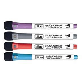- Acompanha 4 marcadores com apagador na tampa sendo: 1 vermelho, 1 preto, 1 azul e 1 roxo