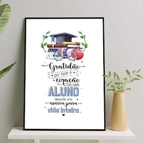 Quadro agradecimento ao professor 45x34cm Moldura: madeira preta Informações do produto tire todas as suas dúvidas no descritivo abaixo: decoração para quarto, sala, cozinha, escritório, área gourmet e muito mais. Chega de paredes vazias. Medidas - cada peça tem 45x34cm a3 . Material do papel - papel fotográfico brilhante de altíssima resolução acabamento - todos os quadros são acompanhados de uma película de acetato para proteção da imagem. - os quadros são embalados de forma segura com plástico bolha com camada dupla de acordo com o tamanho dos quadros. Garantia - garantia de 3 meses. Meu quadro chegou. Como posso fixá-lo Você precisa apenas de um martelo e um prego, pois os quadros já vão acompanhados de penduradores. Esta é a forma mais indicada. Caso prefira, você pode utilizar uma fita dupla face neste caso, sugerimos de alta qualidade para evitar que descole e seu quadro caia . Como posso limpar meu quadro A limpeza é feita como um móvel comum da sua casa. Apenas um pano seco ou espanador são suficientes para tal Ean: 7896451451248