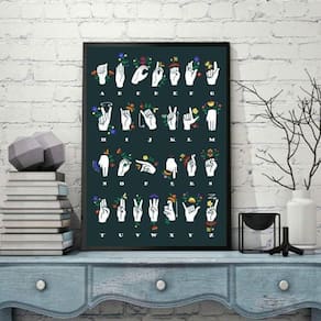 Quadro alfabeto manual - libras 45x34cm - com vidro Moldura: madeira preta Informações do produto tire todas as suas dúvidas no descritivo abaixo: decoração para quarto, sala, cozinha, escritório, área gourmet e muito mais. Chega de paredes vazias medidas - cada peça tem 45x34cm a3 . Material do papel - papel fotográfico brilhante de altíssima resolução acabamento - todos os quadros são acompanhados de vidro para proteção da imagem. - moldura em madeira maciça na cor preta ou branca conforme produto escolhido e pendurador . - os quadros são embalados de forma segura com plástico bolha com camada dupla de acordo com o tamanho dos quadros. Garantia - garantia de 3 meses. Meu quadro chegou. Como posso fixá-lo Você precisa apenas de um martelo e um prego, pois os quadros já vão acompanhados de penduradores. Esta é a forma mais indicada. Como posso limpar meu quadro A limpeza é feita como um móvel comum da sua casa. Apenas um pano seco ou espanador são suficientes para tal