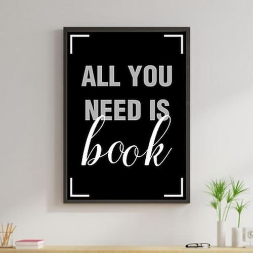 Quadro all you need is book 45x34cm Moldura: madeira preta Informações do produto Decoração para quarto, sala, cozinha, escritório, área gourmet e muito mais. Chega de paredes vazias. Medidas - cada peça tem 45x34cm a3 . Material do papel - papel fotográfico brilhante de altíssima resolução Acabamento - todos os quadros são acompanhados de uma película de acetato para proteção da imagem. - Os quadros são embalados de forma segura com plástico bolha com camada dupla de acordo com o tamanho dos quadros. - de 3 meses. Meu quadro chegou. Como posso fixá-lo Você precisa apenas de um martelo e um prego, pois os quadros já vão acompanhados de penduradores. Esta é a forma mais indicada. Caso prefira, você pode utilizar uma fita dupla face neste caso, sugerimos de alta qualidade para evitar que descole e seu quadro caia . Como posso limpar meu quadro A limpeza é feita como um móvel comum da sua casa. Apenas um pano seco ou espanador são suficientes para tal Marca: Não Informado Ean: 7895142192668
