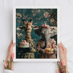 Quadro amigas girafa e elefante 24x18cm - com vidro